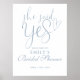Den här elegantens dammiga blåskript "Hon sa ja" möhippans välkomsttecken kan vara personlig med ditt namn och speciella datum. Designad av Thisisnotme©