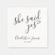 Den här snyggten svartvit "hon sa ja"-förlovningsfest napkin kan vara personlig med din förlovningsfest. Designad av Thisisnotme©