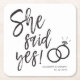 Hon sa ja! | Förlovningsfest Skriptskrift Underlägg Papper Kvadrat