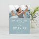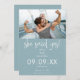 Hon sa ja Foto Modern Script Dusty Blue White Spara Datumet