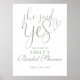 Den här eleganten skickar grönten "Hon sa ja" möhippans välkomsttecken kan vara personlig med ditt namn och speciella datum. Designad av Thisisnotme©