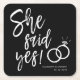 Hon sa ja! | Svart Förlovningsfest Underlägg Papper Kvadrat