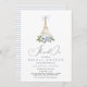 Hon sa att Oui-Fransken Eiffel Torn Inbjudningskort för möhippan har gyllene Eiffel Torn med blå båge överst och blåa blommor med grön vind. Baksidan av inbjudan har baby blue rand. Meddelande mig om du behöver justera eller matcha objekt.