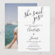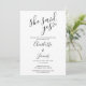 Denna stilrena svarta och vita "hon sa ja"-förlovningsfestinbjudan kan anpassas med detaljer om din fest och ditt speciella foto på baksidan. Designad av Thisisnotme©