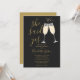 En elegant bröllopsinbjudan med champagneglas och signerad namntext, denna stilrena inbjudan kan anpassas med din information i chic guldtext på svart bakgrund. Med din presentregister QR-kod på baksidan. Designad av Thisisnotme