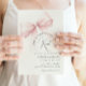 Hon som knyter knuten Bröllopsfestinladning, ett kort som elegant kapslar in spänningen och glädjen inför en kommande bröllopsfest. Denna inbjudan är en vacker blandning av modern sofistikering och tidlös romantik, perfekt för att sätta tonen för en sådan speciell tillställning.