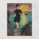 Hon Springa på Beach i en svart klänning silver st Vykort