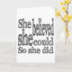 Hon trodde att hon kunde göra det, inspirerande textdesign med vintagens utseendestil, kan få bilder, text eller annat inslag tillagt med hjälp av den anpassade funktionen. En Underbar presentidé för ett student nyligen, ett bröstcancer överlevande, en stark kvinna som gör en underbar prestation. Den vita bakgrunden till det här objektet kan anpassas till ett annat färg genom att välja "anpassa" och sedan redigera bakgrunden till färg. Ett underbart tips i verktyg för att anpassa den här produkten till din egen anpassningsbar.