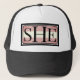 Baseball/Truckerkeps/kapsel med utslaget SHE i en minimalistisk men ny och innovativ utformning. Perfekt till transkvinnor eller personer som identifierats som kvinnor.