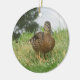 Ett foto av en vacker kvinnlig gräsänder anka som har en tid i gräset med en damm på ett prydnadsföremål! Detta prydnadsföremål är perfekt till jul eller när som helst på året!