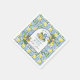 En elegant bröllopsfest-design med blå kakelbakgrund och citroner.