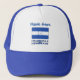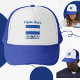 Den blå och vita honduranska Flagga med ord HONDURAS, nedan, i flagga färg. Ovanför, en ställe för ditt namn, i blå brev.. Skapa en personlig eller lägg till någon annans namn för en anpassningsbar av en truckerkeps. Perfekt till bära till den honduranska familjeåterföreningen.