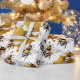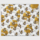 illustrated honey bees hover over honey gold brush splashes for a lively, artful pattern that feels like honey drips. The illustrated details and warm yellow and gold tones make it a charming choice for birthdays, garden parties, housewarmings, or beekeeper gifts. An easy way to wrap anything in sunny, nature inspired style.