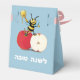 En söt honungsbin håller upp en honungsstickande dropp med honung. I texten står det att Shana Tova ska vara på engelska och på hebreiska, L'Shana Tova. Du kan enkelt anpassa det här kortet genom att ändra bakgrunden färg och/eller genom att ändra den engelska texten eller ta bort hebreiska.