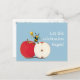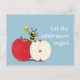 En söt liten honungsbi står med en häst vid ett helt äpple och en äppelhalva. Han håller en honungsstift över äpplet och säger: "Låt firande börja!" Det finns en pastellblå bakgrund. På andra sidan av kortet står det "Shana Tova" och du har ett annat sött litet bi som flyger längs grund högerna. Du kan anpassa kortet och ändra bakgrundsblått om du föredrar ett annat färg. Du kan enkelt anpassa vilken text som helst i rutorna som finns i orderformuläret.