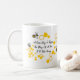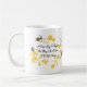 Kaffet mugg har honungsbins design med texten "Ett säkert sätt att förlåta biet är att smaka honung" Firar vår underbara osunghjälte, honungsbien, med morgonkaffet