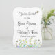 En roligt och glad partyinbjudan med honungsbin som besöker en kamomill blomsterträdgård i svart penna och bläck med vattenfärg. Anpassa inbjudan med din information med det teckensnitt och teckensnitt du vill använda färg.