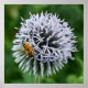 Dekorera ett levande utrymme med den här kvadratiska, fotografiska poster utskriften som innehåller fotobilden av ett honungsbin på en lila Globe Thistle-blomma, som annars kallas Echinops. En underbar bild av blommigten! Markera poster storlekt och anpassa efter behov samt markera alternativ för ram.