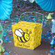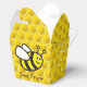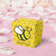 Sömmande flygande bin tecknad över sömlös bikupa.