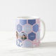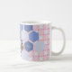 Vad kan vara bättre än att spilla morgonkaffet med ditt favoritpars mugg? Med en bikaka mönster av blåtonsformer som bär redigerbar text och foton på abstraktens rosa och blå mönster. Skriva initialer, datum för giftermål eller början av relationen och lägg till foton. Det här är perfektens bröllop-gåva eller jubileumsgåva för att älska par.