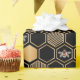 Den här contemporaryn har en geometrisk bekupning av mönster, humlor och en svart bakgrund av färg.