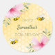 För en 50:e (eller någon ålder) födelsedagsdag, sommaren party. Gult, vit bakgrund med en bikaka mönster. Dekorerad med rosa färgad tropiska blommigtar blommor, hibiscus och lycklig humla. Mallar för datum och namn och ålder 50 år. Grönt färgad brev. Perfekt för en trädgård, en bakgårdstek party.