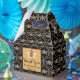 Den här contemporaryn har en geometrisk bekupning av mönster, humlor och en svart bakgrund av färg.