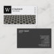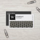 En visitkortsmall med ett långt rektangulärt bild-/fotoområde med ett närliggande foto av skrivmaskiner som kan bytas ut mot en egen bild eller ett eget foto och med en panel i överkanten lämnat för ett monogram eller en logotyp som innehåller "W" som exempel, ett monogram som också kan ändras. Designen balanseras med fyra små rektangulära textbaserade symboler på högerna skapat med symbolteckensnittet Semafor. Det vita området är också en ram-mask som skapar det enkelt att placera och ändra storlek på ett foto under. Företag namn och affärstyp/offert på framsidan med namn och kontaktuppgifter på baksidan i vitt på en kontrasterande mörk grått-bakgrund. Kan anpassas till olika företag och andra användor.