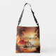 För din smekmånad. Solnedgång, en tropisk strand med handflatan träd. Text: Honeymoon Vibes.