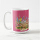 Ett vackert blommönster på honungssuckle rosa mugg. Mors dag, födelsedag eller bara för dig själv
