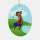 Det finns ingen helgon här på julprydnaden från Saints_Alot på Zazzle. Vi kunde inte hjälpa oss själva från att ge ut dessa humoristiska, stiliserade bilder av kvinnliga golferer på egen hand! Framsida: Efter en träning förbereder sig en möjlig hongolfer på första hål för att frigöra sig, vilket framgår av en gult-orange-markör. I mode är denna storskaliga dam kanske överklädd för golfbanan. Hon bär Påsk-benet och högklackar, vit blus och gult kjol och slätt buske eller safari jacka. Baksida: En ung, ung, kvinnlig golfer klädd i vinterkläder gör ett svårt skott över en vatten-. Hon är full mot kallet, bär en burgundisk sticka hatt och lång scarf över en brant jacka och en lila kjol och skinn. + Allmän domänrad teckning eller urdel som anpassats och färgats av Saints_Alot.