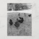 Dessa kort har ett svart och vitt foto av kycklingar på en ladugård. Den här bilden är också tillgänglig för matchande frimärke. Photo ©Archie Patenaude