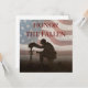 Ät den som fallit med en sista hälsning. Till heder för våra fallna medlemmar av de väpnade styrkorna. Soldater knullar framför sin fallna kamrat grav. I bakgrunden är USA:s flagga.