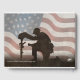 Ät den som fallit med en sista hälsning. Till heder för våra fallna medlemmar av de väpnade styrkorna. Soldater knullar framför sin fallna kamrat grav. I bakgrunden är USA:s flagga.
