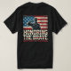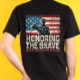 Här är en T-shirt-skjorta för minnesdagen med en vintage-stil-amerikansk flagga med frasen "Honoring the Modig" i fet, tryckt typografi. 🇺 🇸 ✨