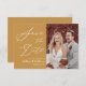 Honung Guld Elegant Script Modern Photo Bröllop Spara Datumet