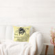 Älskling, jag är hemma! Dekorativ kvadratkudde med ett bin och en honungskomb formad mönster på honungens färgad. Motsatsen är det matchande färg utan formgivning.