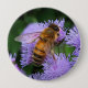 Detta knäppas särdrag ett honungbi som pollinerar älskvärda mjuka blått, och lilaageratumen blomstrar.