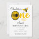 En levande gult guld och svart honungsbin, bikupor och honungskomb först födelsedagsfest inbjudan. Vit och söt. Du kan anpassa det här för en tjej eller pojke. Ändra bara namn och gender. Gult guld honungskamrat på inbjudan ryggen.