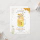 Honung under bidagen och bifödelsedag med illustration av en honungskomb mason burk-mjölkskaka som är full med blommor och trollspö av honung. Mjölkskaka omges av konetti-, vildblomma- och honeykomb-illustrationer.