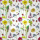 Ett botaniskt tyg som är dekorerat med en mängd blommor med honungsbin som besöker glömska-mint, daffodils, kosmos, jordgubbar i vild och mer skisserat i bläck med vattenfärg. Snyggt för kläder eller hemdekaler!