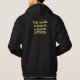 This hoodie is much better than I expected. top quality, true sizing, and really comfy. I was a bit worried that the lettering would be too dark on the navy blue hoodie, but once it arrived it was perfect. Easy to see the words, and the quality of the wording is fabulous. I will be buying more hoodies in future