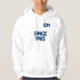 This hoodie is much better than I expected. top quality, true sizing, and really comfy. I was a bit worried that the lettering would be too dark on the navy blue hoodie, but once it arrived it was perfect. Easy to see the words, and the quality of the wording is fabulous. I will be buying more hoodies in future