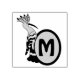 En illustration av vismisk hoope från sidan. För fågelns höger är en sfär med M på den, m är kort för monogram och kan vara personlig.
