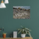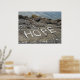 Vackra vita sjöar stavar ord "hopp" på ett sten vid stranden kant. Havet i bakgrunden. En underbar inspirerande strandkonst poster.