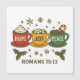 Bra presentidé för julfirande. Rolig julmagnet att dela ut på fester, på jobbet eller i kyrkan! Söt design med färgglada koppar med Hopp Glädje och Fred fyllda med kakao och toppade med vispad grädde, marshmallows och sockerdrickor. Omgivna av gyllenbruna snöflingor och bibelord från romarbrevet 15:13 "Och förhoppningens Gud må fylla er med all glädje och frid i tron..."