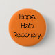 Ett litet, runda klämmer fast med ord hopp. Hjälp. Återställning.", utskrivavet på den. Orange bakgrund betyder själv-skada medvetenhet. Mars 1st är Själv-Skadan medvetenhetdagen.