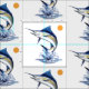En avbilda av den härliga hoppa marlinen presenteras på detta färgrika tyg. Den ska inspirerar en ändlös variation av projekterar för att påminna en av lyckliga sommardagar som spenderades på stranden eller, tajmar cavorting i öarna.