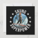 Ett vackert exempel på vinterskidsport, som visar bergsgrafik och en kvinna på skidor, och ordspråket: skidåkning är min supermakt och små stjärnor. Det här är perfektens gåva till alla, som kärlek skidar, berg och vintersporter.