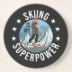 Ett vackert exempel på vinterskidsport, som visar bergsgrafik och en kvinna på skidor, och ordspråket: skidåkning är min supermakt och små stjärnor. Det här är perfektens gåva till alla, som kärlek skidar, berg och vintersporter.